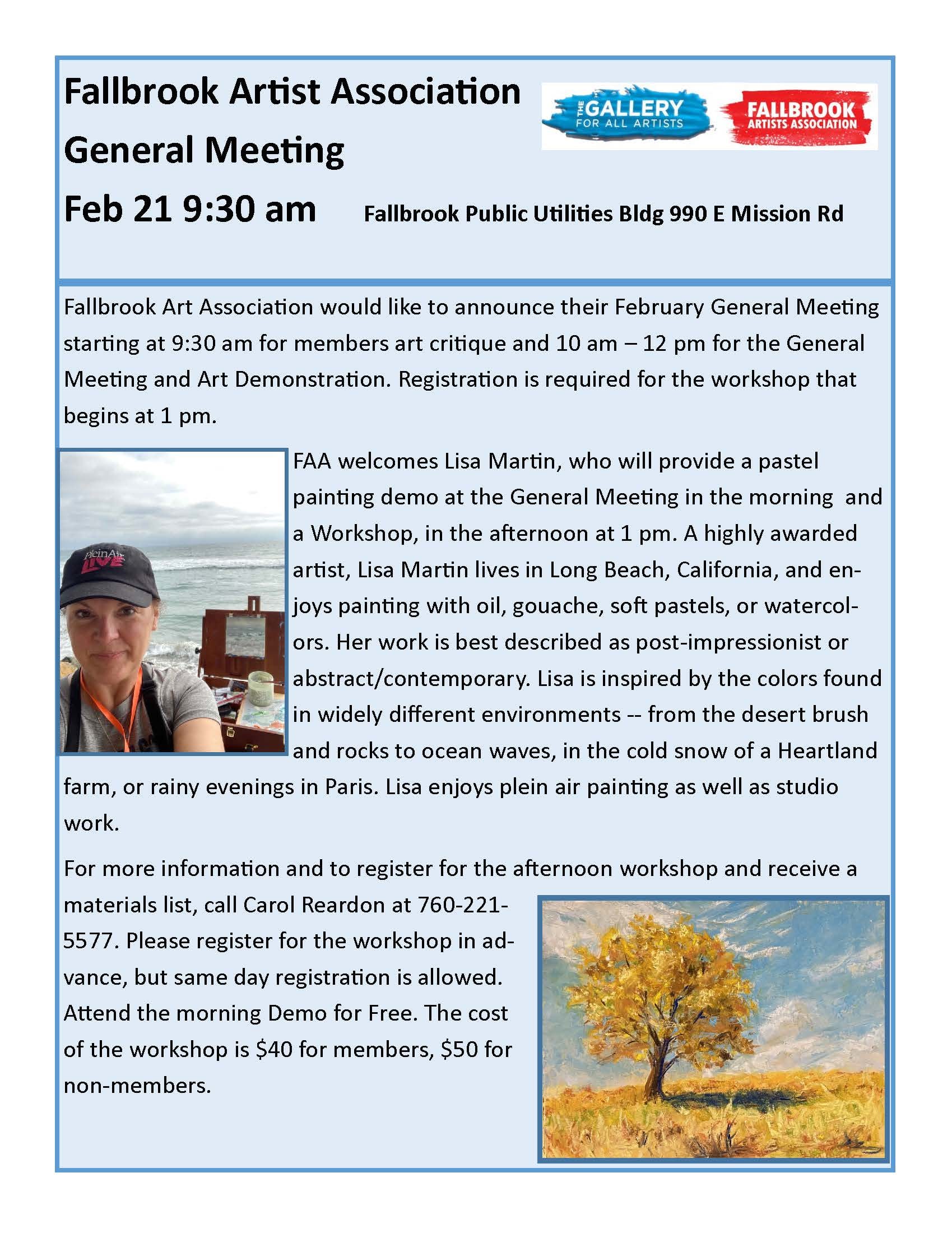 Fallbrook Artists Association General Meeting With Art Demonstration & Workshop